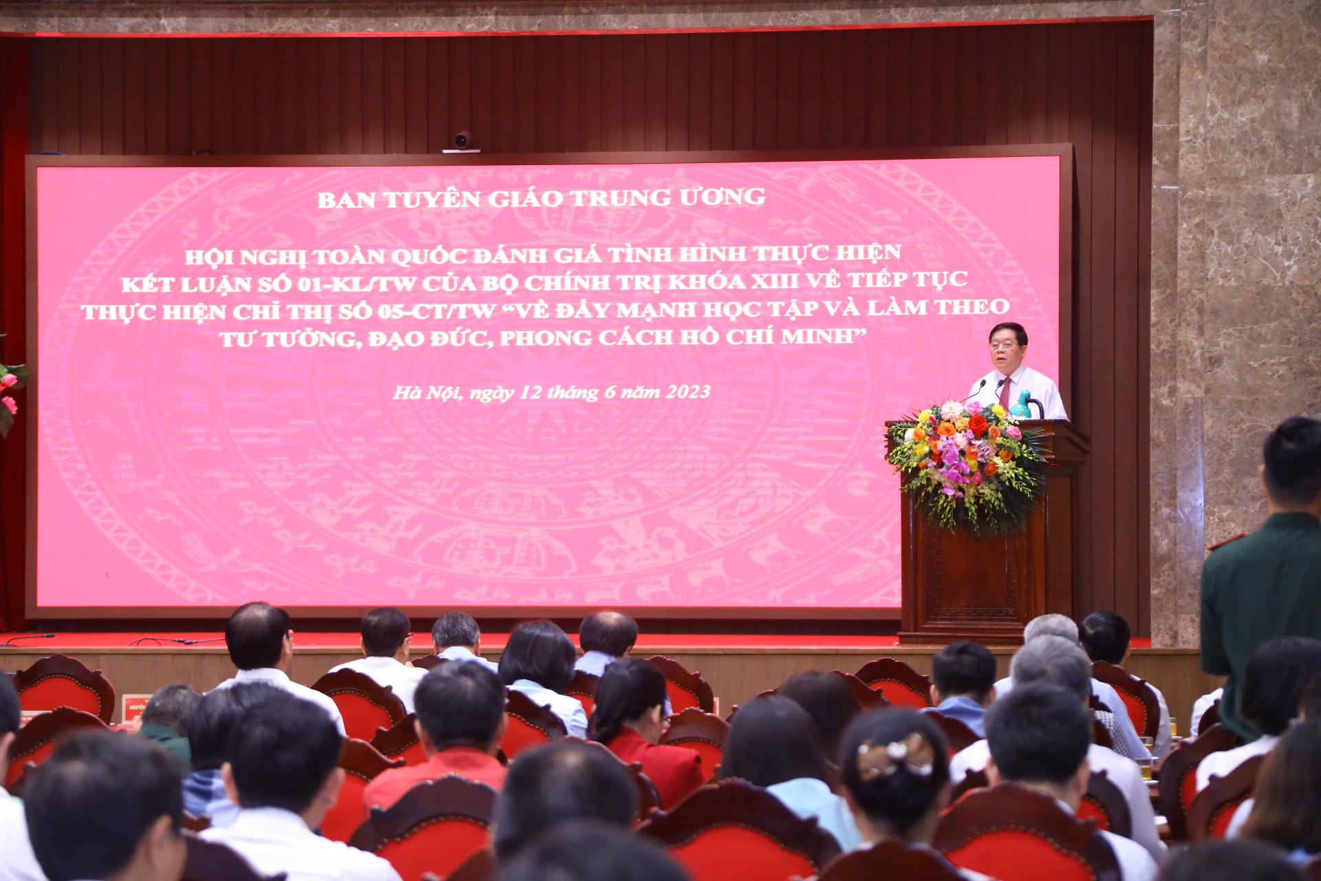 Hội nghị của chúng ta được tổ chức vào dịp toàn Đảng, toàn quân và toàn dân ta sôi nổi kỷ niệm 133 năm ngày sinh Chủ tịch Hồ Chí Minh (19/5/1890-19/5/2023), 112 năm ngày Bác ra đi tìm đường cứu nước (5/6/1911-5/6/2023). Đặc biệt, hôm nay vừa tròn đúng 2 năm ngày đồng chí Tổng Bí thư Nguyễn Phú Trọng có bài phát biểu chỉ đạo rất quan trọng tại Hội nghị toàn quốc sơ kết 5 năm thực hiện Chỉ thị số 05-CT/TW của Bộ Chính trị về “Đẩy mạnh học tập và làm theo tư tưởng, đạo đức, phong cách Hồ Chí Minh” và triển khai Kết luận số 01 (12/6/2021-12/6/2023). Điều này thật nhiều ý nghĩa, khẳng định giá trị bền vững của tư tưởng, đạo đức, phong cách Hồ Chí Minh, soi sáng, tạo động lực cho toàn Đảng, toàn quân, toàn dân ta tiếp tục sự nghiệp cách mạng độc lập dân tộc gắn liền với chủ nghĩa xã hội, phấn đấu xây dựng nước Việt Nam “dân giàu, nước mạnh, dân chủ, công bằng, văn minh”.