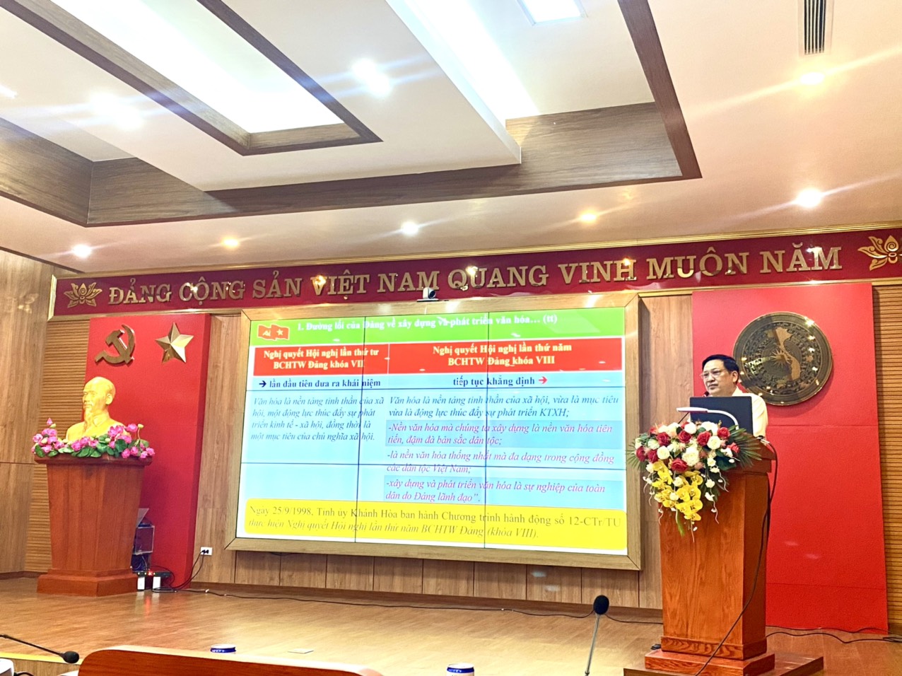 Trong suốt quá trình lãnh đạo cách mạng, Đảng Cộng sản Việt Nam và Chủ tịch Hồ Chí Minh luôn quan tâm xây dựng nền văn hóa Việt Nam toàn diện, giữ gìn được cốt cách, bản sắc dân tộc, bảo đảm tính khoa học, tiến bộ, lấy con người làm trung tâm cho sự phát triển của văn hóa. Theo Chủ tịch Hồ Chí Minh, văn hóa có ý nghĩa rất quan trọng, là một mặt trận đấu tranh cách mạng, là ngọn đuốc “soi đường cho quốc dân đi”. Con người là trung tâm, chủ thể, nguồn lực quan trọng nhất và mục tiêu của sự phát triển. Xác định vị trí, vai trò quan trọng của giá trị văn hóa và con người trong giai đoạn hiện nay, thực hiện Kết luận số 01-KL/TW, ngày 18/5/2021 của Bộ Chính trị về tiếp tục thực hiện Chỉ thị số 05-CT/TW, ngày 15/5/2016 của Bộ Chính trị về đẩy mạnh học tập và làm theo tư tưởng, đạo đức, phong cách Hồ Chí Minh, năm 2023, Ban Tuyên giáo Tỉnh ủy đã biên soạn và triển khai học tập Chuyên đề “Học tập và làm theo tư tưởng, đạo đức, phong cách Hồ Chí Minh về phát huy giá trị văn hóa, sức mạnh con người Việt Nam gắn với khát vọng xây dựng tỉnh Khánh Hòa trở thành thành phố trực thuộc Trung ương vào năm 2030” nhằm góp phần thực hiện thắng lợi Nghị quyết Đại hội đại biểu toàn quốc lần thứ XIII của Đảng và nghị quyết đại hội đảng bộ các cấp, nhiệm kỳ 2020 – 2025, đặc biệt là các mục tiêu, nhiệm vụ trong Nghị quyết số 09-NQ/TW, ngày 28/01/2022 của Bộ Chính trị về xây dựng, phát triển tỉnh Khánh Hòa đến năm 2030, tầm nhìn đến năm 2045.