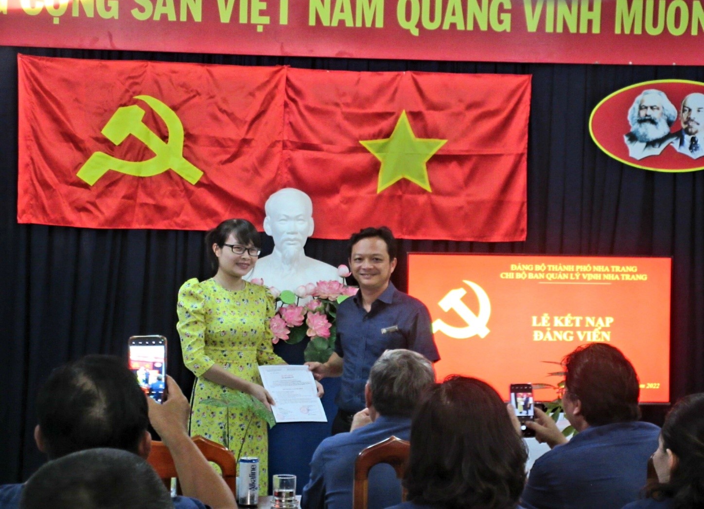 Đồng thời tại hội nghị, Chi bộ Ban Quản lý Vịnh Nha Trang đã làm Lễ kết nạp Đảng viên cho đ/c Nguyễn Thị Hậu – Ủy viên BCH Chi đoàn, nhân viên Kế toán thuộc phòng Hành chính – Tổng hợp; nâng tổng số đảng viên lên 27 đồng chí.