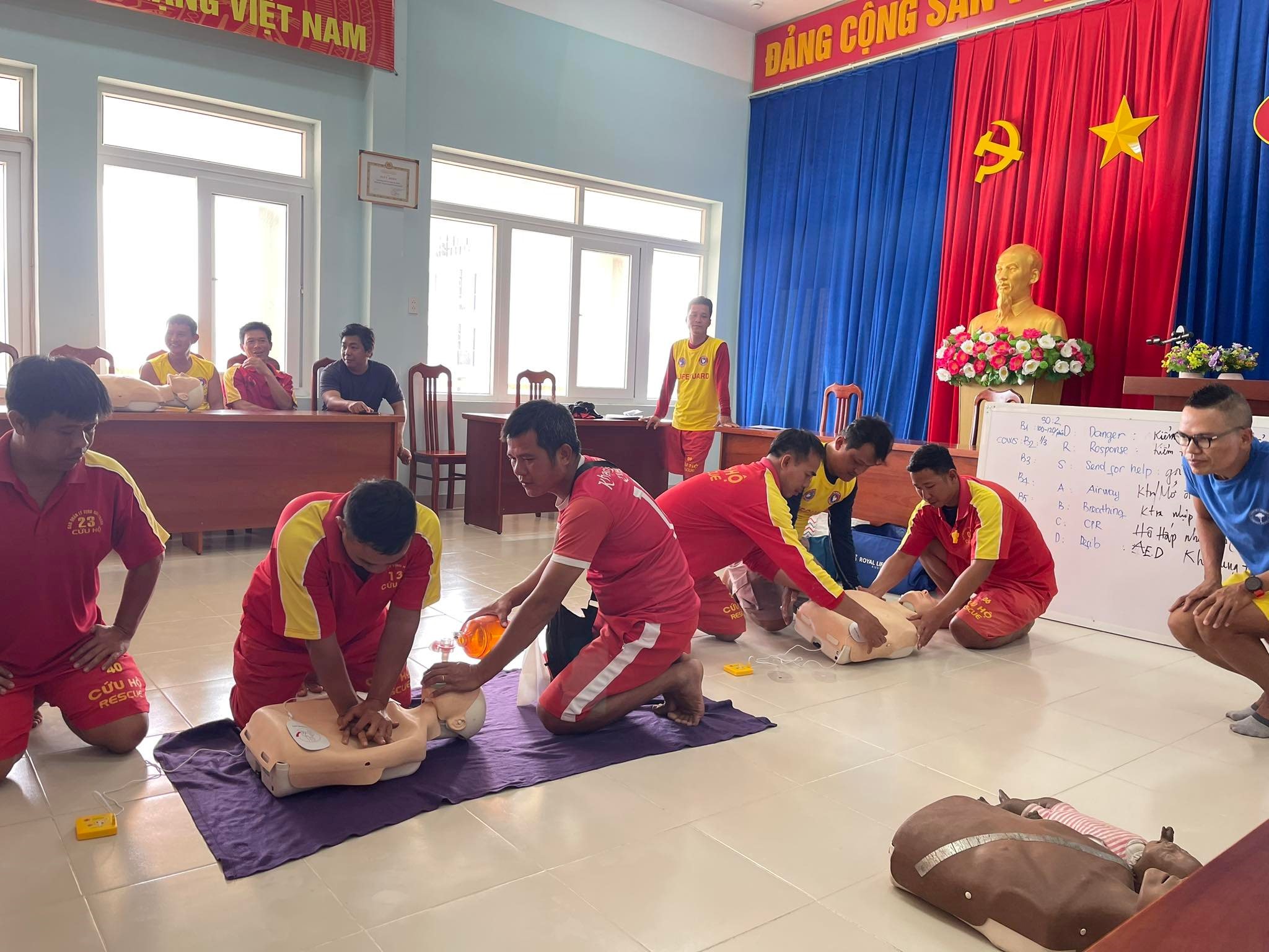 Với mục tiêu từng bước đưa hoạt động cứu hộ cứu nạn trên biển đến với toàn thể cộng đồng địa phương, nhằm nâng cao hiệu quả công tác phòng, chống đuối nước trên toàn tỉnh. Nội dung huấn luyện gồm: Nâng cao thể lực, bơi, lướt ván, hô hấp nhân tạo, kỹ năng sử dụng máy khử rung tin bên ngoài bán tự động.